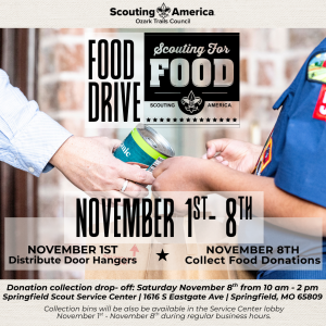 Main Collection Drop-off Event is Saturday, November 8th from 10am-2pm at the Springfield Scout Service Center – 1616 S Eastgate Ave, Springfield, MO